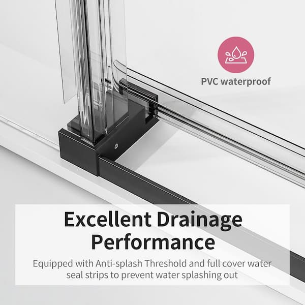 Reversible 56-60 in. W x 76 in. H Frameless Sliding Shower Door in Matte Black with Tempered Clear Glass, Soft-Close