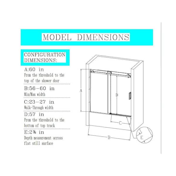 Reversible 56 to 60 in. W x 60 in. H Frameless Sliding Tub Door in Matte Black with Tempered Clear Glass and Soft-Close