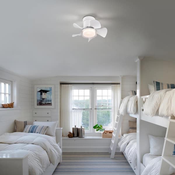 Lalapis 14 in. 19 in. Indoor White Low Profile Flush Mount Ceiling Fan with Light and Remote