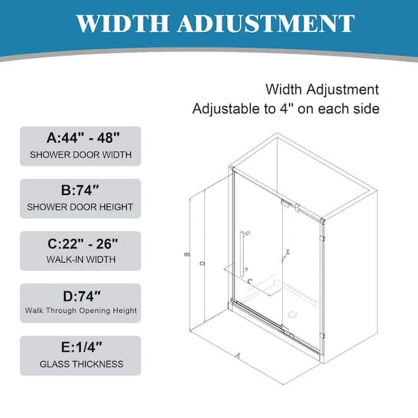 48 in. W x 74 in. H Semi-Frameless Pivot Shower Door in Matte Black with 1/4 in. (6mm) Clear Tempered Glass