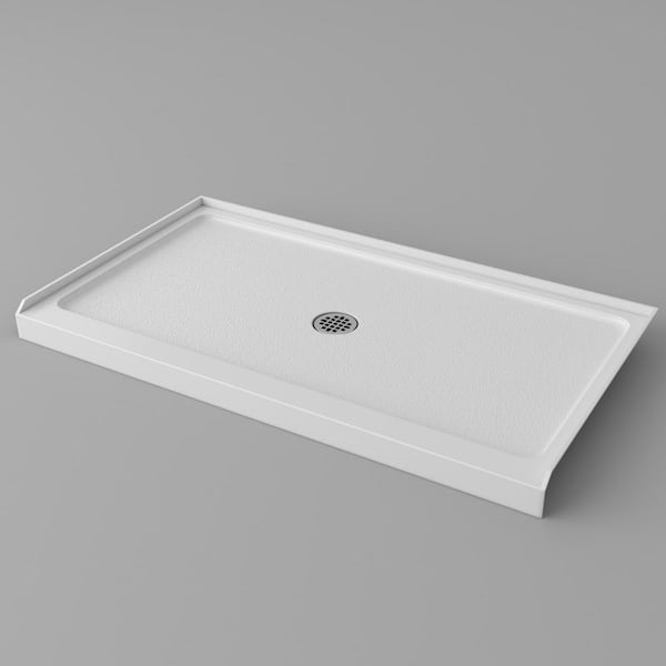 54 in. L x 32 in. W Single Threshold Alcove Shower Pan Base in White with Center Drain