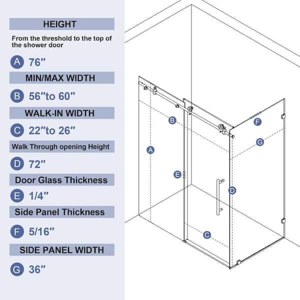56-60 in. W x 36 in. D x 76 in. H Frameless Corner Sliding Shower Door Enclosure in Matte Black Clear Glass