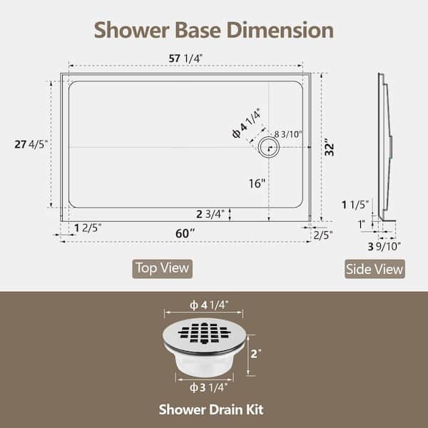 60 in. L x 32 in. W Single Threshold Alcove Shower Pan Base in White with Right Drain