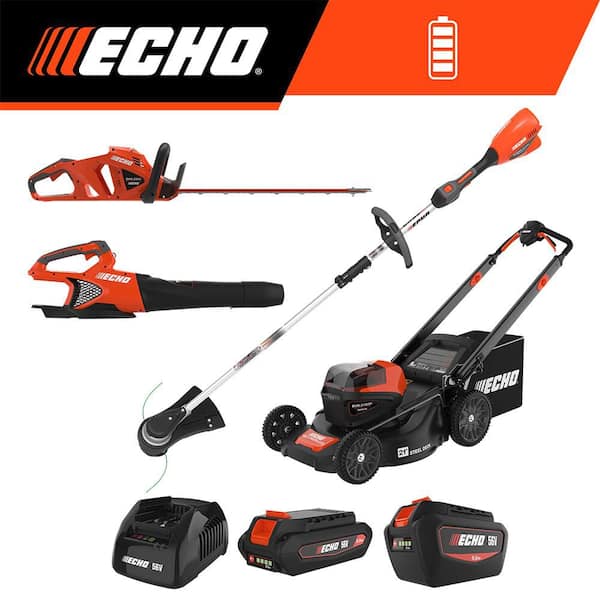 56V Cordless Battery Lawn Mower, String Trimmer, Blower and Hedge Trimmer Combo Kit w/ 2 Batteries and Chargers (4-Tool)