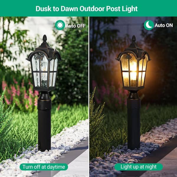 18 in. 1-Light Black Aluminum Dusk to Dawn Outdoor Waterproof Pier Mount Light with No Bulbs Included