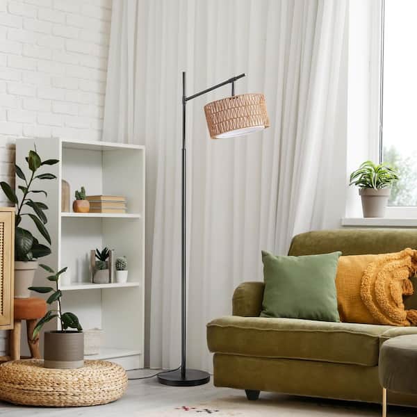 63.7 in. Brown Rattan Dimmable And Timer Arc Floor Lamp for Living Room With Bulb And Remote Control Included