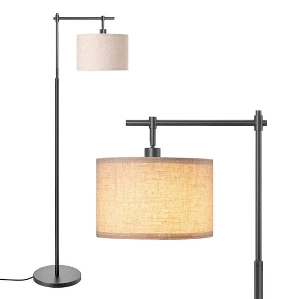 63 in. Black 1-Light Arched Floor Lamp for Living Room with Fabric Drum Shade