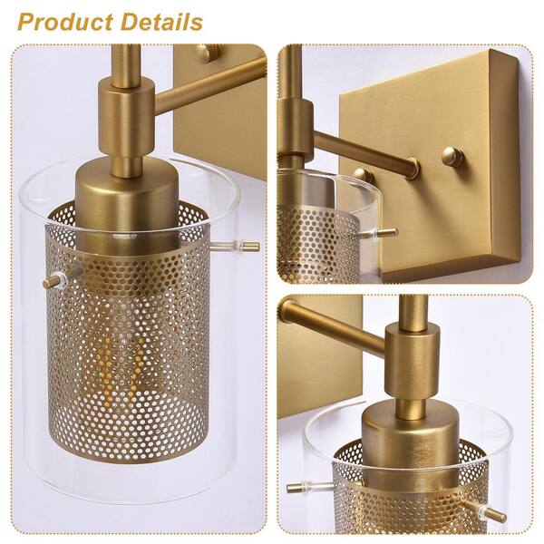 4.71 in. 1-Light Gold Bathroom Vanity Light with Metal and Glass Shade