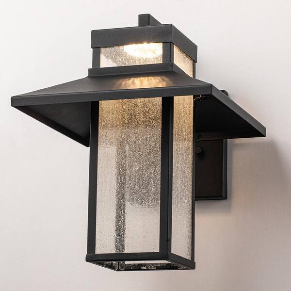Barry 12-Watt 1-Light Black Outdoor Hardwired Lantern Sconce Seedy Glass 3000K Wall Integrated LED