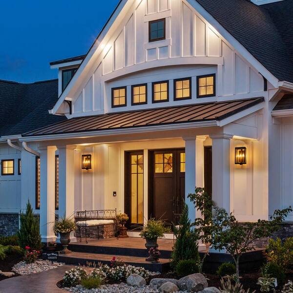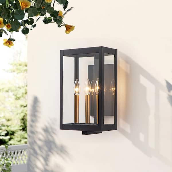Brynn 3-Light Black & Gold Wall Lantern Outdoor Sconces with Glass