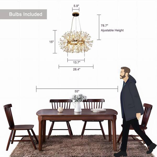 Calzada Modern 12-Light Gold Sputnik Firework Chandelier, Round Pendant Ceiling Lighting