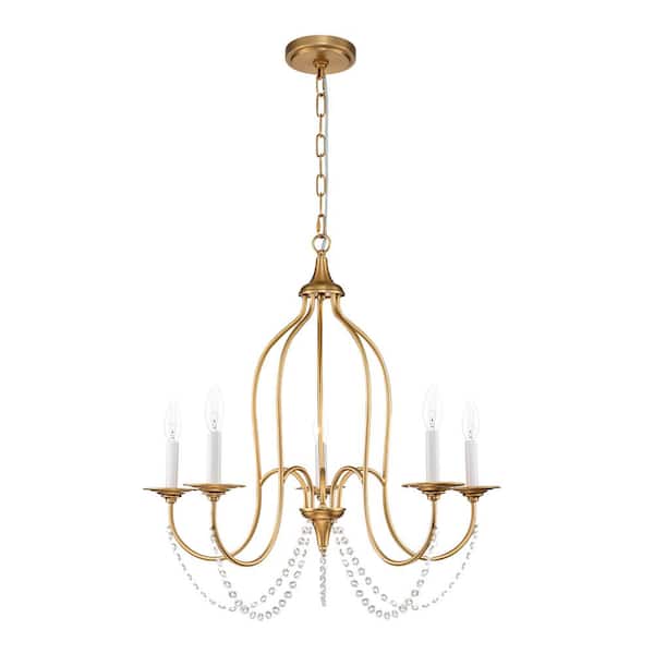 Carmichael 5-Light Brass Chandelier with Crystal Accents