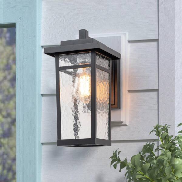 Douglas 1-Light Black Lantern Outdoor Sconce with Hammered Glass
