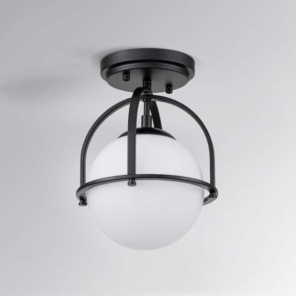 Fragoso 8.66 in. 1-Light Black Semi Flush Mount Light with Opal Glass