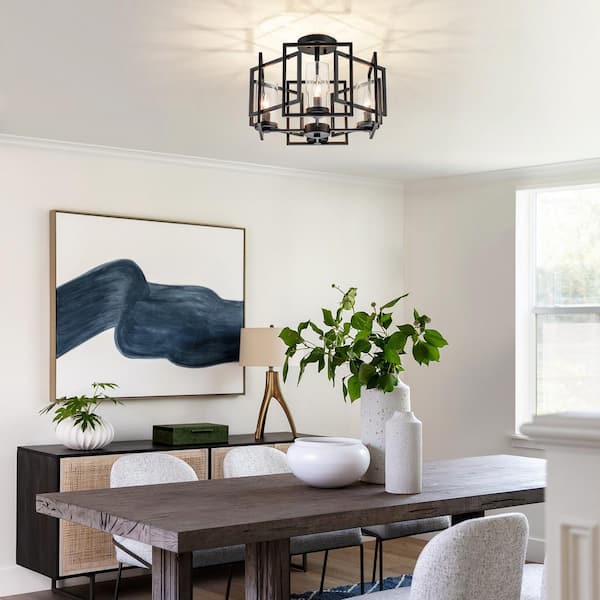 James 16.14 in. 4-Light Geometric Semi Flush Ceiling Light in Black with Clear Glass