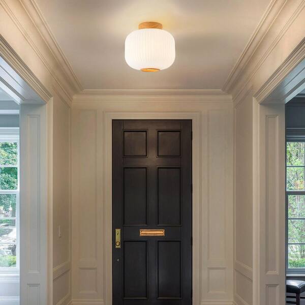 Lueck 10 in. 1-Light Modern Wood Flush Mount Ceiling Light Fixture with Frosted Glass