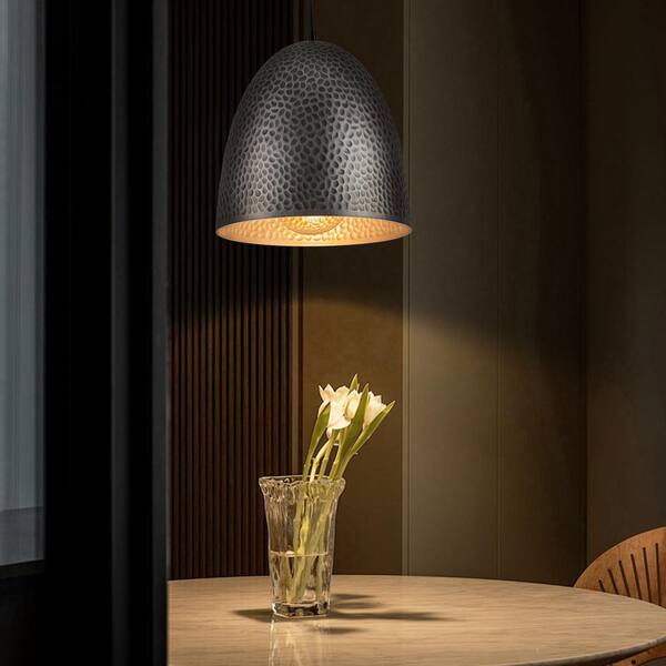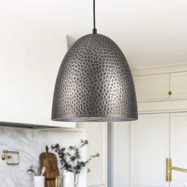 Nathan 1-Light 11.8 in. Industrial Antique Silver Hammered Chandelier Dome Pendant Light