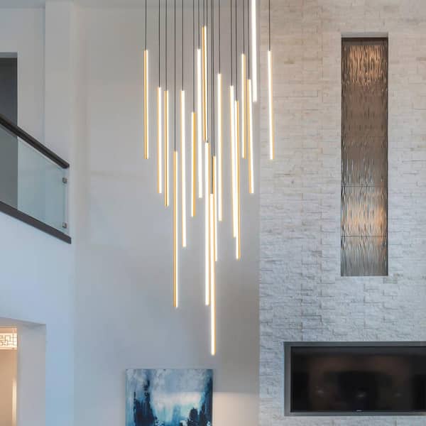 Neculina 18-Light 159-Watt Integrated LED Minimalistic Gold Kitchen Island Pendant Adjustable Chandelier