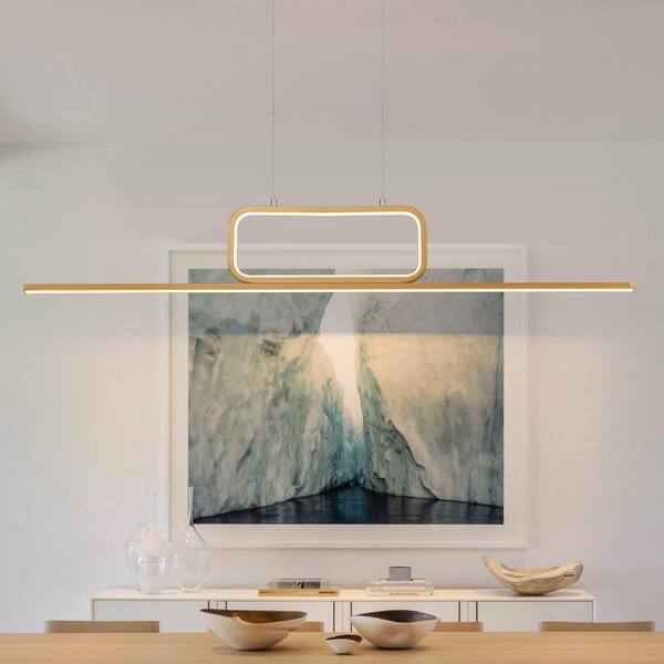 Neculina 2-Light Modern Integrated LED Pendant Light for Kitchen Island Gold Linear Chandelier