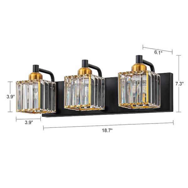 Orillia 18.7 in. 3-Light Black Gold Bathroom Vanity Light with Crystal Shades