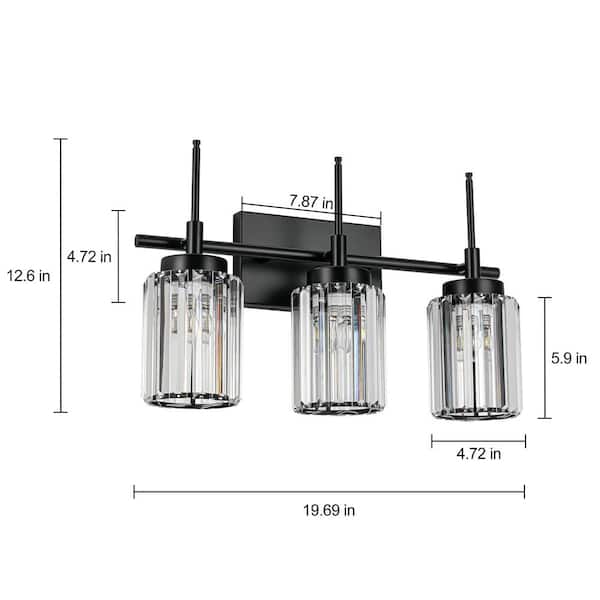 Orillia 19.69 in. 3-Light Modern Industrial Black Bathroom Vanity Light with Crystal Cylinder Shades
