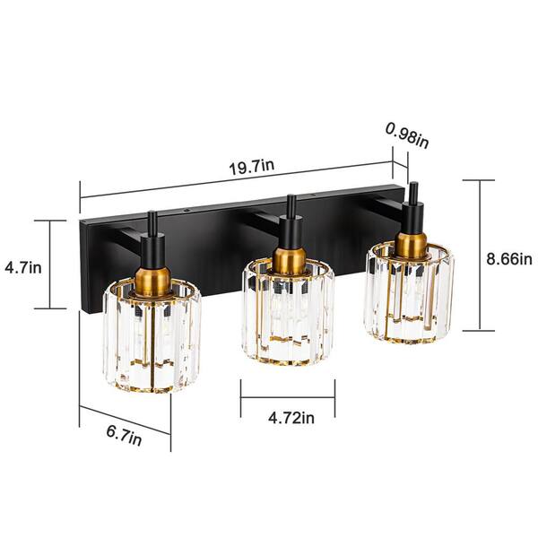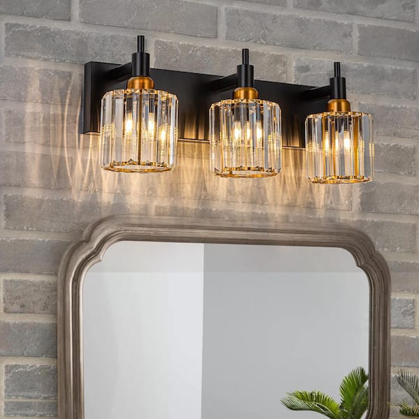 Orillia 19.7 in. 3-Light Modern Black Gold Bathroom Vanity Light with Round Crystal Shades