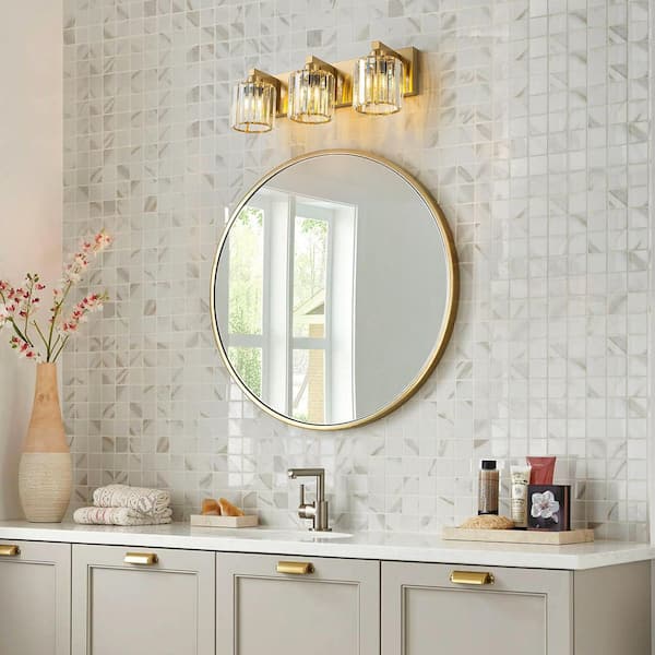 Orillia 20 in. 3-Light Gold Vanity Light with Cylinder Crystal Shade Modern Wall Mount Sconce for Bathroom Powder Room