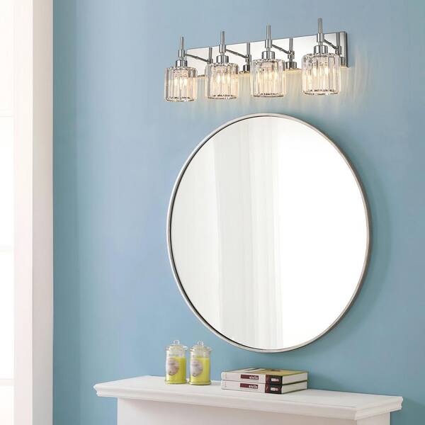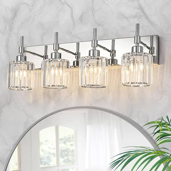 Orillia 26.38 in. 4-Light Chrome Crystal Bathroom Vanity Light with Shades for Bathroom Powder Room Kitchen