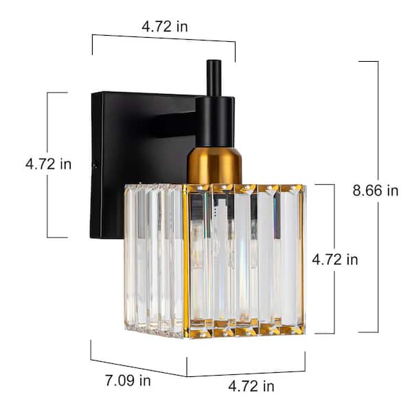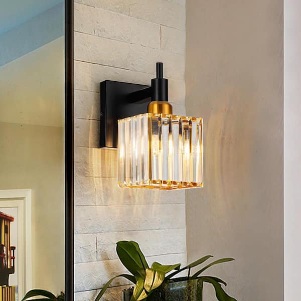Orillia 4.72 in. 1-Light Modern Black Gold Bathroom Vanity Light with Crystal Shades