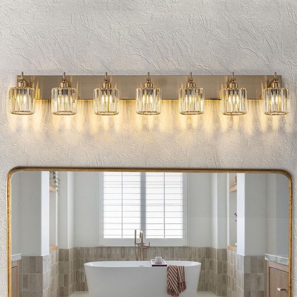 Orillia 51.2 in. 7-Light Gold Bathroom Vanity Light with Crystal Shade Wall Sconce Over Mirror