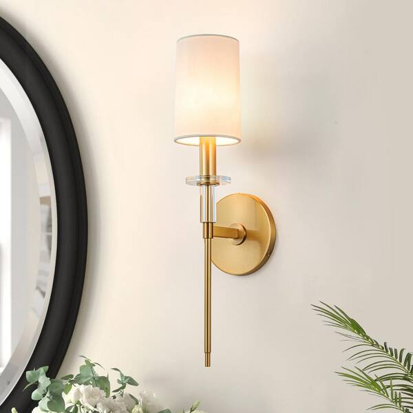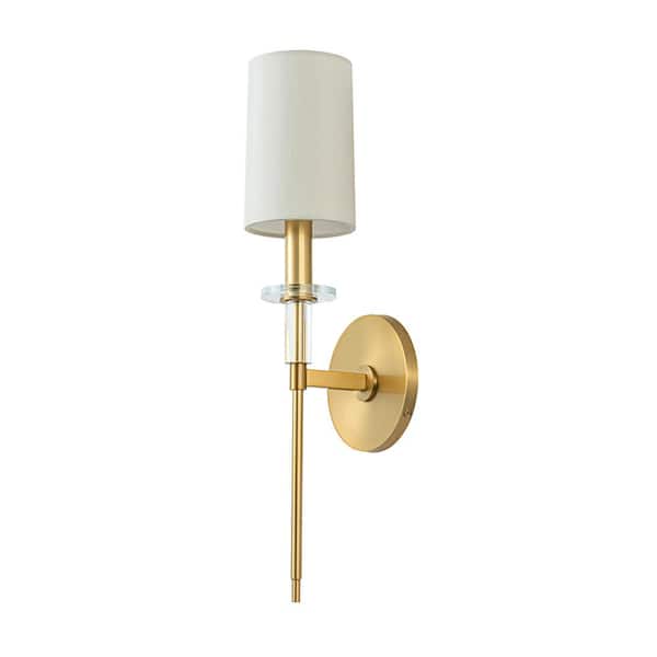 Sophia 5.1 in. 1-Light Brass Wall Sconce with Fabric Shade and Crystal Accents