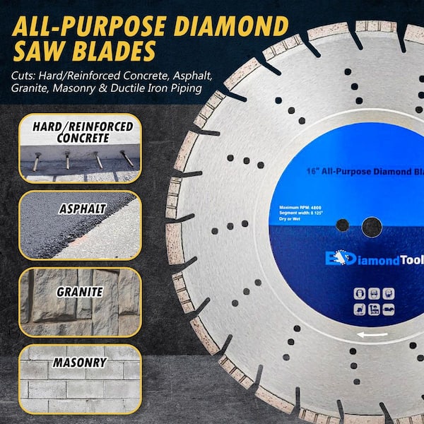 16 in. Hard/Reinforced Concrete, Asphalt, Granite, Terrazzo, Segmented Rim, All Purpose Diamond Saw Blades, 20 mm Arbor