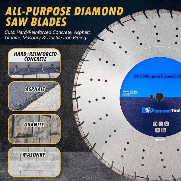 24 in. All Purpose Diamond Saw Blades 10 mm Segment Height 1 in. Arbor