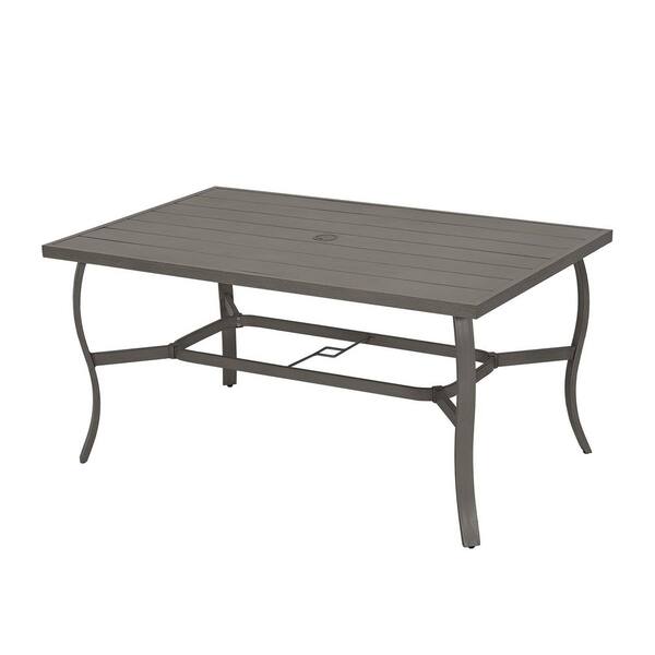 AluLux 6-Person Gray Rectangular Aluminum Outdoor Dining Table with Umbrella Hole