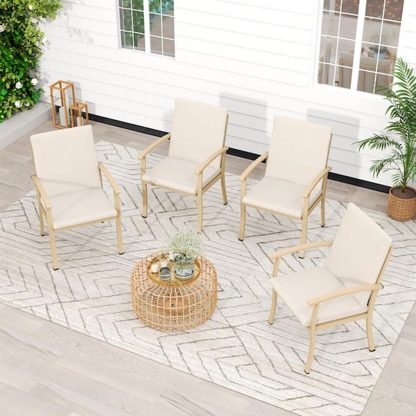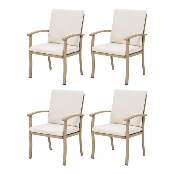AluLux Beige Aluminum Patio Dining Chairs with Beige Cushions (4-Pack)
