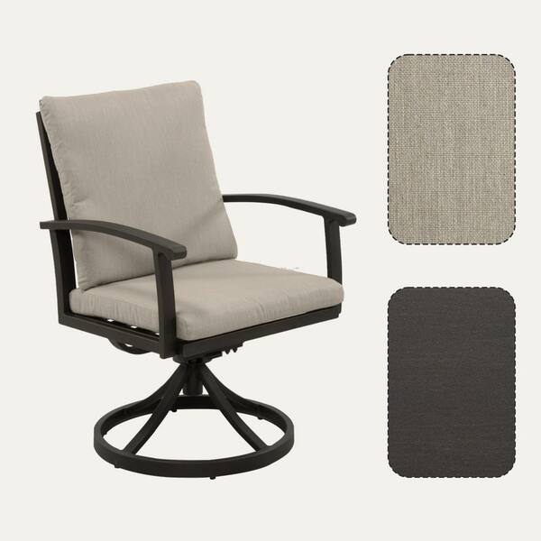 AluLux Dark Brown Swivel Aluminum Patio Dining Chairs with Sandspit Brown Cushions (2-Pack)