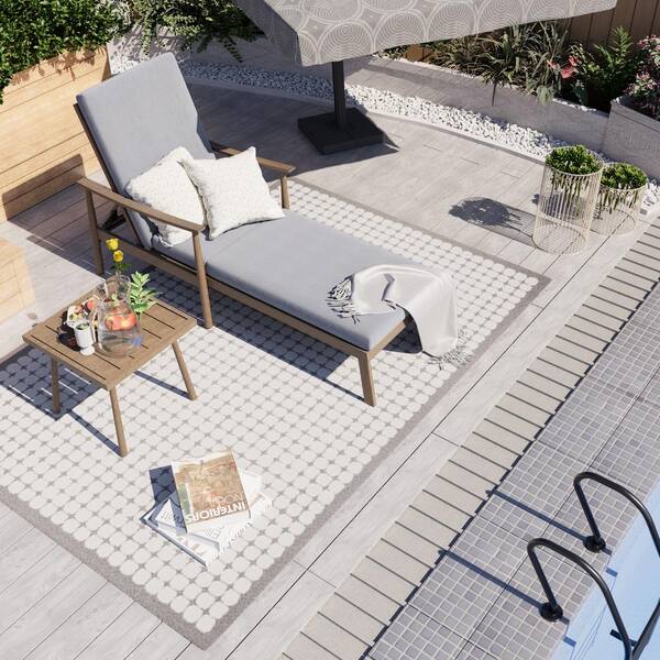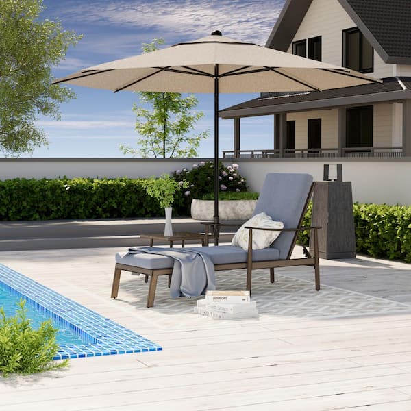 1-Piece Aluminum Outdoor Patio Chaise Lounge with Side Table and Blue Cushions
