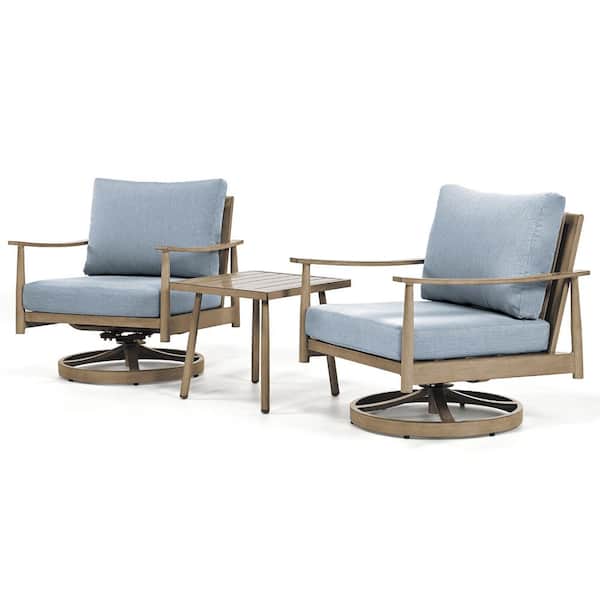 3-Piece Aluminum Outdoor Patio Conversation Set with Swivel Chairs, Webbing Chair Back and Blue Cushions