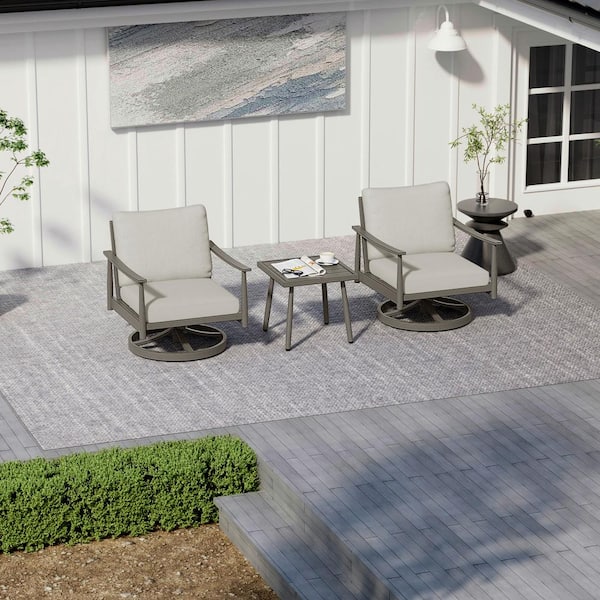 3-Piece Aluminum Outdoor Patio Conversation Set with Webbing Chair Back and Gray Cushions