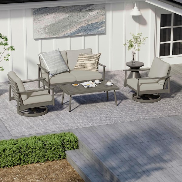 4-Person Aluminum Patio Conversation Set with 2 Swivel Chairs, Loveseat, Coffee Table and Gray Cushions