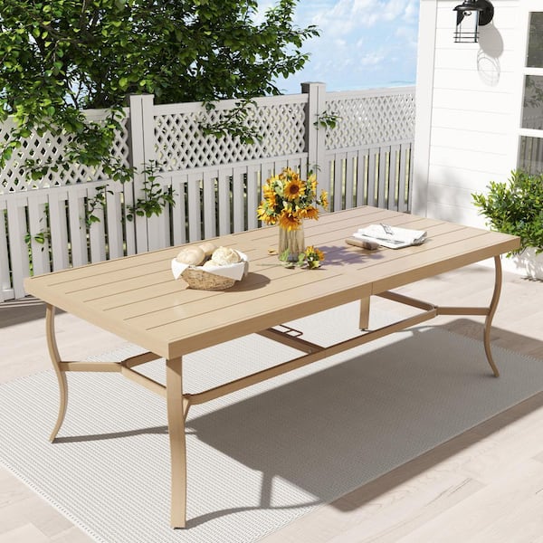AluLux 8-Person Beige Rectangular Aluminum Outdoor Dining Table with Umbrella Hole