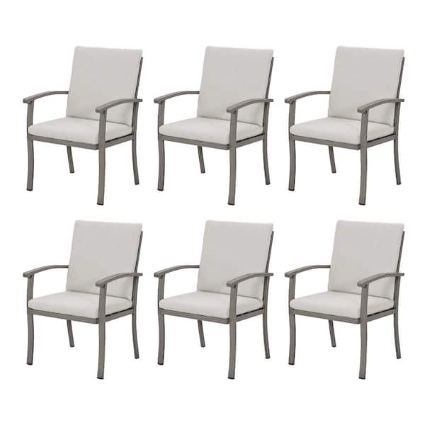 AluLux Gray Aluminum Patio Dining Chairs with Light Gray Cushions (6-Pack)