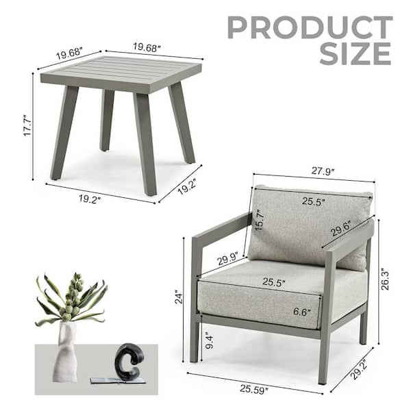 NovaRest 3-Piece Aluminum Patio Conversation Set with Gray Cushions