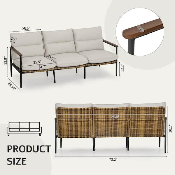 Pure Cane 3-Seat Aluminum Wicker Outdoor Sofa Couch with Gray Cushions