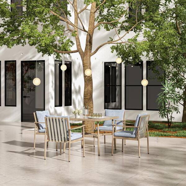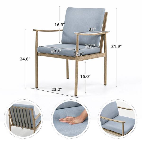 SleekLine 2-Piece Aluminum Patio Dining Chairs with Blue Cushions
