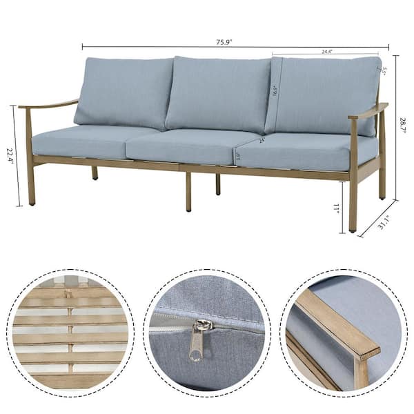 SleekLine 3-Seat Brown Aluminum Outdoor Sofa Couch with Blue Cushions