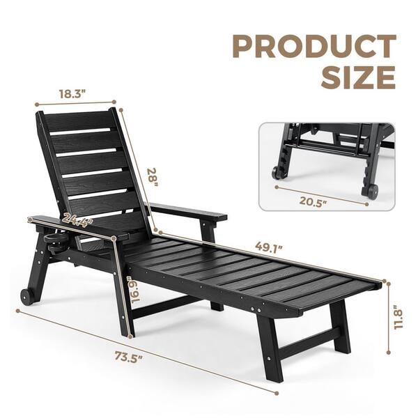 ZeaLuxe 2-Piece Black HDPE Plastic Outdoor Patio Chaise Lounges with Wheels and Adjustable Backrest