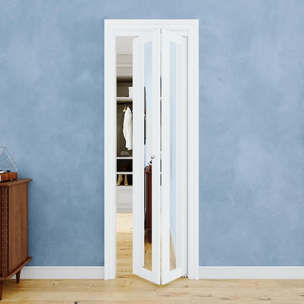 24 in. x 80 in. 1-Lite Mirrored Glass and Solid Core White Finished Close MDF Bi-fold Door with Hardware