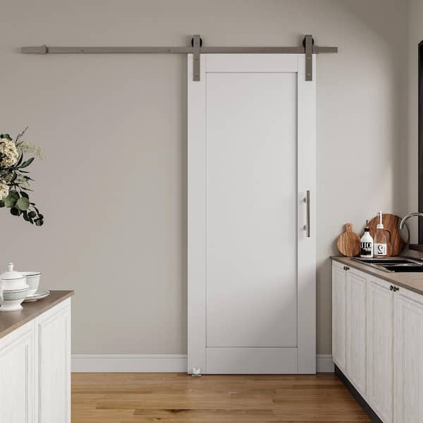 32 in. x 84 in. White 1-Panel Blank Solid Core Composite MDF Primed Sliding Barn Door with Hardware Kit Nickel Plated