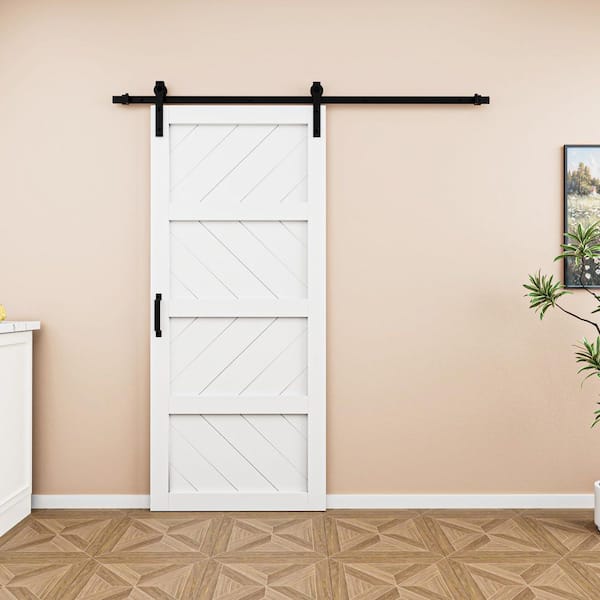 36 in. x 84 in. White 4 Lite Wave Pattern Finished MDF Sliding Barn Door with Hardware Kit
